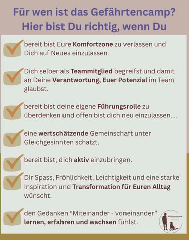 Sommer Gefährtencamp voller Abenteuer, Training, Coaching, Gemeinschaft, Begleitung, Programm und Ausspannen.