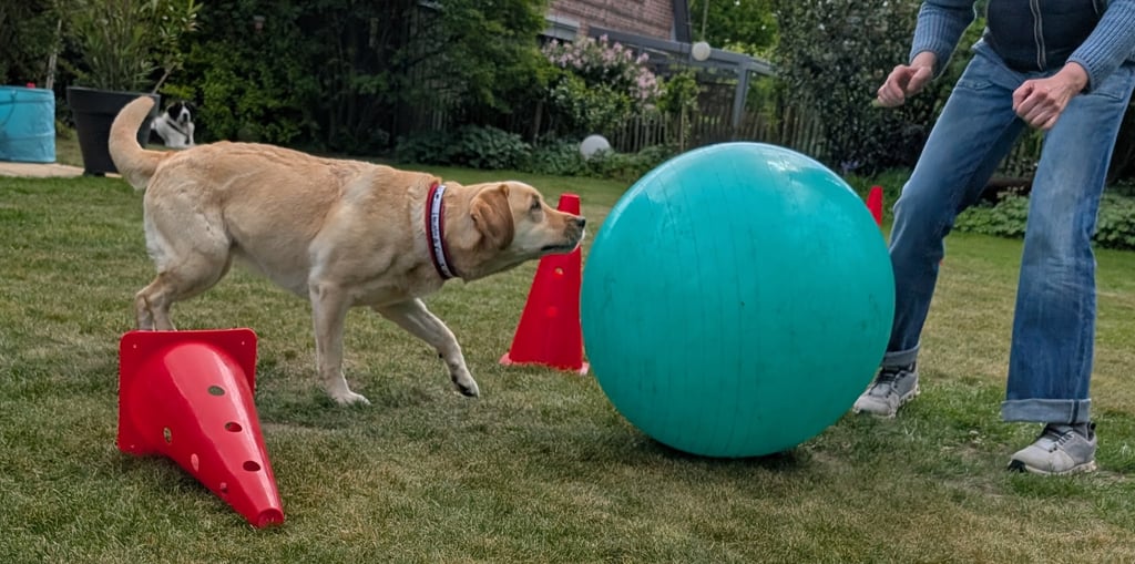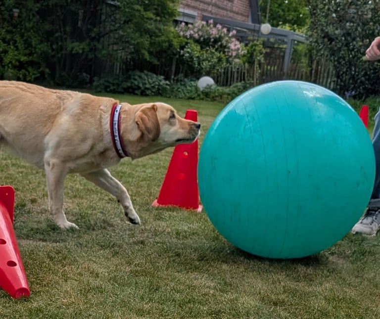 Das Training kann wunderbar in den eigenen Wänden aufgebaut werden und ist gerade auch für den Winter gut geeignet. Beim Treibball Spielen können wir unsere Kommunikation mit unserem Gefährten grandios überprüfen.
