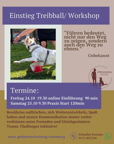 Konzept: Wir trainieren im bewährten Konzept in der Praxis als auch online. Was heißt das ? Ihr habt die Möglichkeit über das "Wiesentraining" hinaus ganz individuell und ohne Ablenkung Fähigkeiten zu festigen. Wir schalten uns mit Videos zusammen. Besprechen Eure Herausforderungen und finden gemeinsam Ansätze zu Lösungen und Wegen, die auch für andere Teams hilfreich sein können. Ohne Hund ist das genaue Schauen und Analysieren oft einfacher und effektiv. Voneinander Lernen kann sehr bereichernd sein.